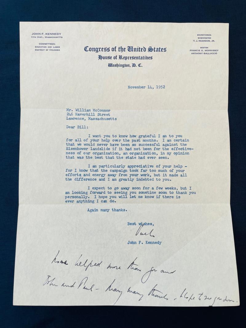 RARE JOHN F KENNEDY AUTOGRAPHED LETTER HAND SIGNED & INSCRIPED. ADDITIONAL PHOTOS