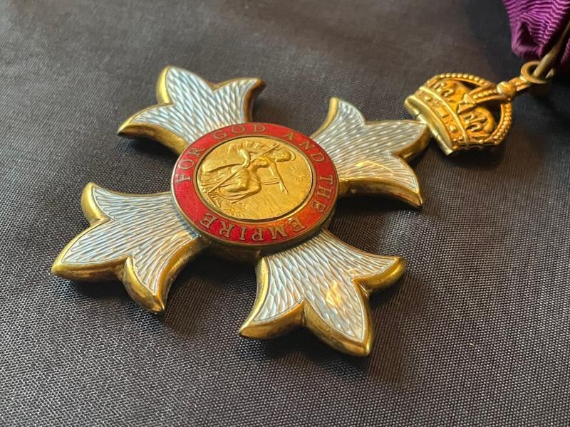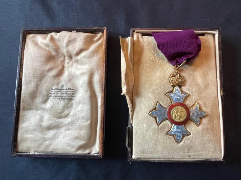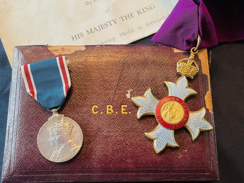 A very hard to find named complete set comprising of a full-sized cased CBE 1st Type medal cased and a full-size coronation medal, with coronation letter naming the recipient and mentioning his OBE. The CBE Sterling Silver/Guilloche Medal with case Garrard of London. A wonderful and rare opportunity to obtain a 100% Original Large CBE Full Size Medal in Gold Gilt and enamel guilloche finishing, with Original Presentation Case intact, made by Royal Silversmith makers of the time Garrard's of London. To the reverse of the medal, we the Royal cipher with crown above and roped bordering. The medal is hinged attached to the crown which is in perfect working order. The medal is still in superb finishing as you can see from the photos, the guilloche enamel is in excellent condition with the inner circle in red finished enamel with block lettering in gold "For God and the Empire". To the centre Britannia again finished in gold gilt. The medal still retains the original neck ties and fasteners, the silk purple water fleck ribbon super condition. To the top front of medal we see the Royal Crown, still prominent and present. The presentation case in which the medal is housed is of a purple leatherette finishing, the case is in two parts detached from the hinge it shows much wear inside and out, but alas still the original case, press to release still working. To the inside a cream velvet base with a silk padded liner to the roof with the full Garrard stamp and by special appointment to His Majesty the King. Coronation medal comes with its original letter of issue, for the Coronation of King George VI 12th May 1937, within the letter named and also mentions his CBE award. The coronation medal has fantastic detailing to both sides and comes with its original water flex condition, no edge knocks. Hard to find named set examples.