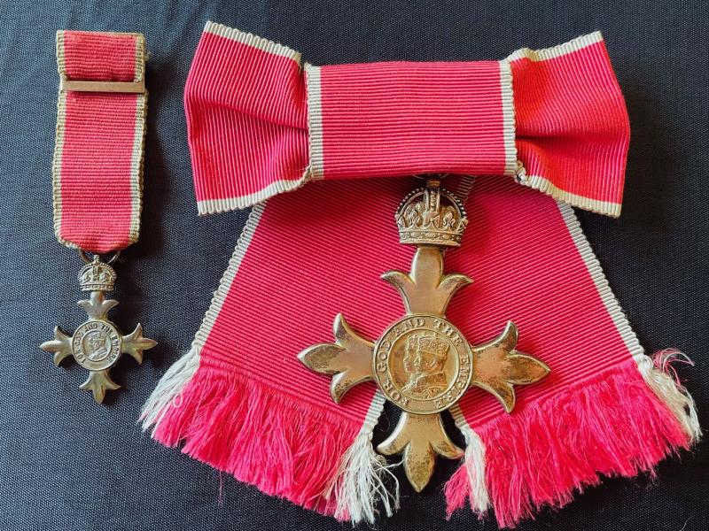 1940s HARD TO FIND MBE MEDAL WITH MINATURE MEDAL, CASED WITH CARD