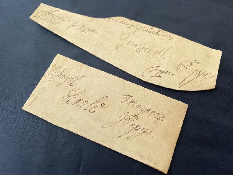TOTALLY AUTHENTIC SAMUEL PEPYS AND JOHN PEPYS HAND INK SIGNATURES INCLUDING 7 OTHERS. ADDITIONAL PHOTOS