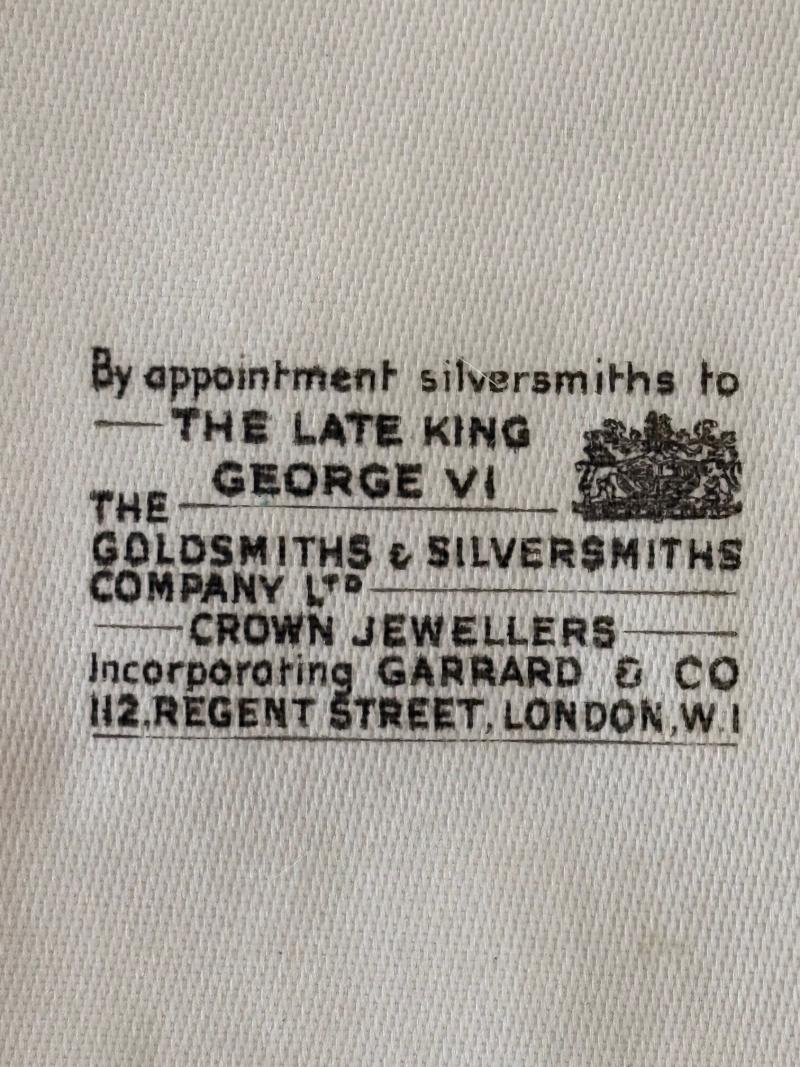 In essence, the box isn't just packaging; it's a tangible piece of history from a pivotal moment in British royal service, That's a description of a rare, vintage presentation box from The Goldsmiths & Silversmiths Company Ltd (who merged with Garrard & Co., the Crown Jewellers), issued briefly around 1952 after King George VI's death, marking a poignant moment when they transitioned from royal appointment holders for him to serving the new monarch, Elizabeth II, essentially a commemorative piece for collectors of royal & silversmithing history.