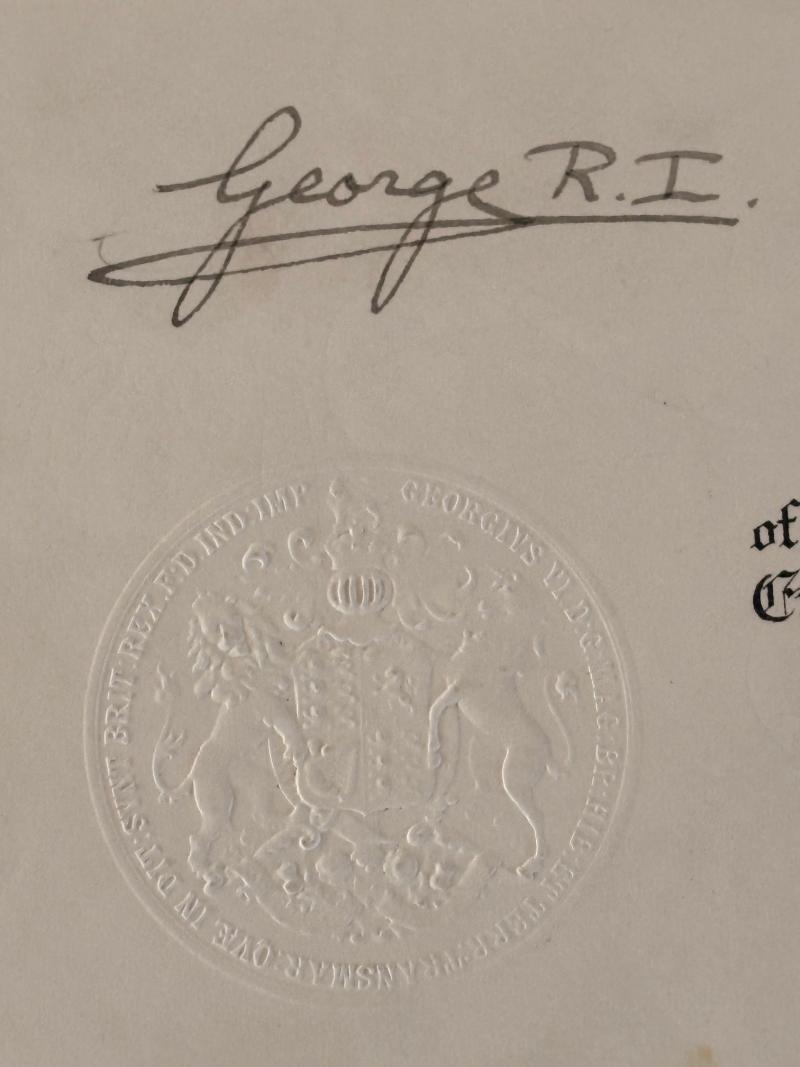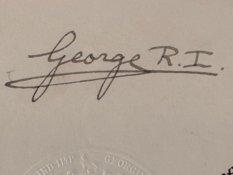 WW2 hand ink signed 1941 King George VI and Antony Eden document, USA Connection