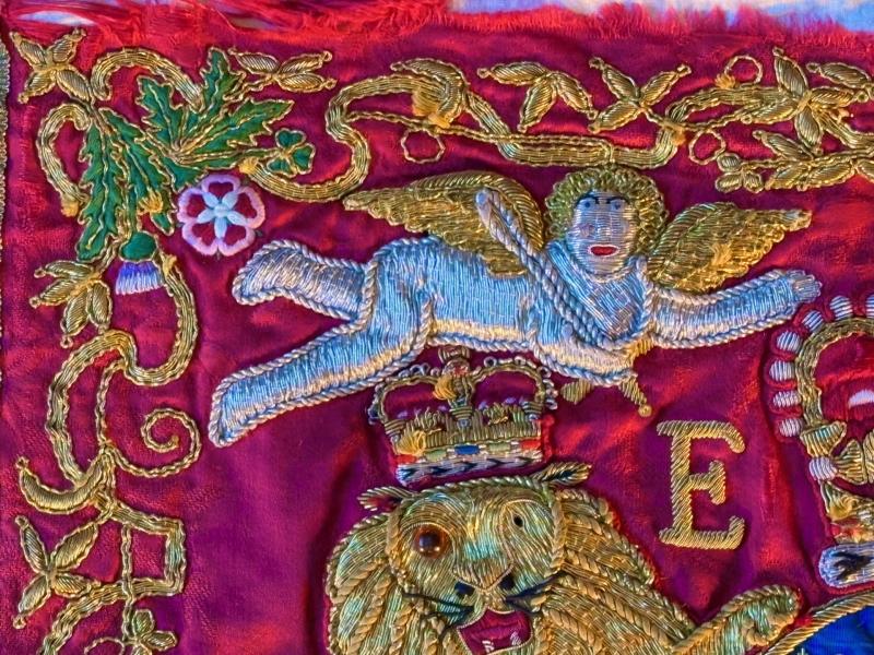 Authentic Elizabeth II Household Cavalry State Trumpeter's Ceremonial Trumpet Banner. additional photos