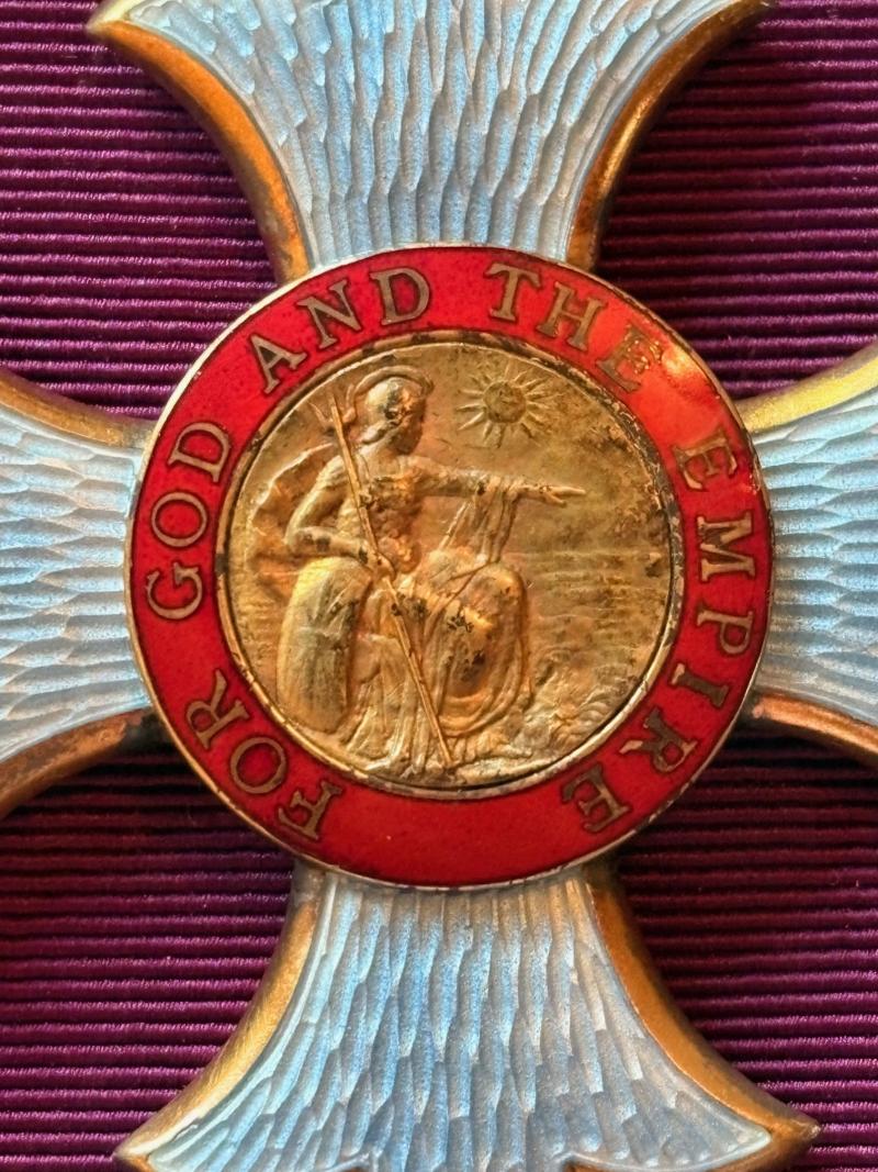 A harder to find full-sized British military cased WW1 Wartime CBE 1st Type medal, The CBE Sterling Silver/Guilloche Medal with case Garrard of London. A wonderful opportunity to obtain a 100% Original Large CBE Full Size Medal in Gold Gilt and enamel guilloche finishing, with Original Presentation Case intact, made by Royal Silversmith makers of the time Garrard's of London. To the reverse of the medal, we the Royal cipher with crown above and roped bordering. The medal is hinged attached to the crown which is in perfect working order. The medal is still in superb finishing as you can see from the photos, the guilloche enamel is in excellent condition with the inner circle in red finished enamel with block lettering in gold "For God and the Empire". To the centre Britannia again finished in gold gilt. The medal still retains the original neck tie and fastener in used condition, the silk purple military water fleck ribbon with red strip to centre denoting military example. To the top front of medal we see the Royal Crown, still prominent and present. The presentation case in which the medal is housed is of a purple leatherette finishing, the case to outside (CBE Mily) and shows wear inside and out, press to release catch still perfect working order. To the inside a cream velvet base with a silk padded liner to the roof with the full Garrard stamp and by special appointment to His Majesty the King. Good example of an original WW1 Cased Miliary CBE Medal. Such medals would have been presented to the recipient by the King.