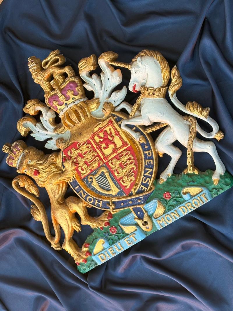 Beautiful Large Heavy early 1950s Elizabeth II Metal Royal Coat of Arms wall plaque. ADDITIONAL PHOTOS