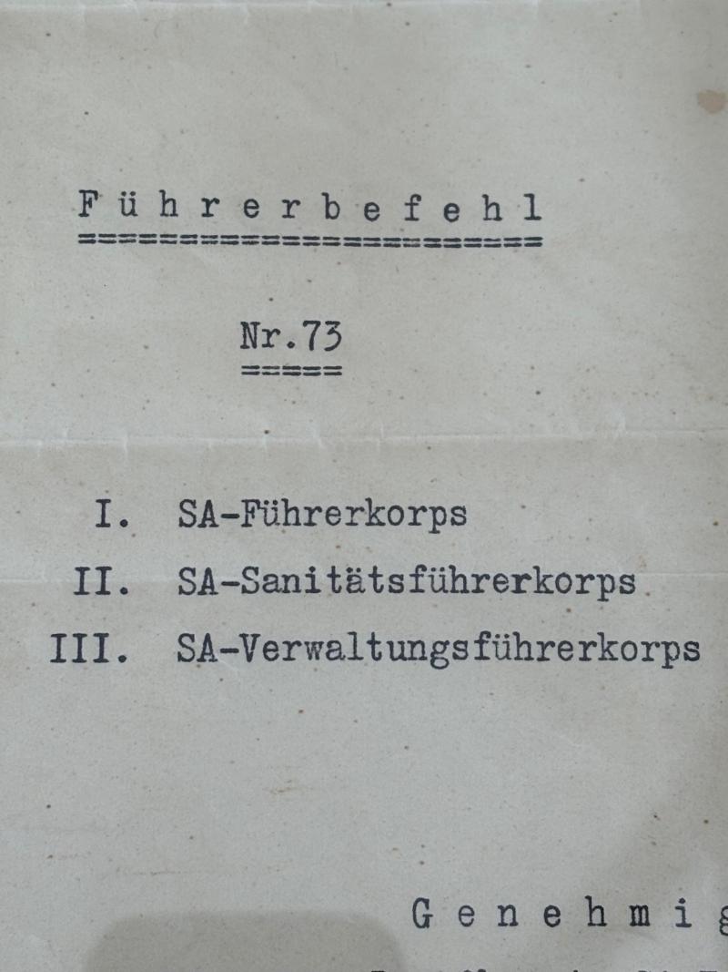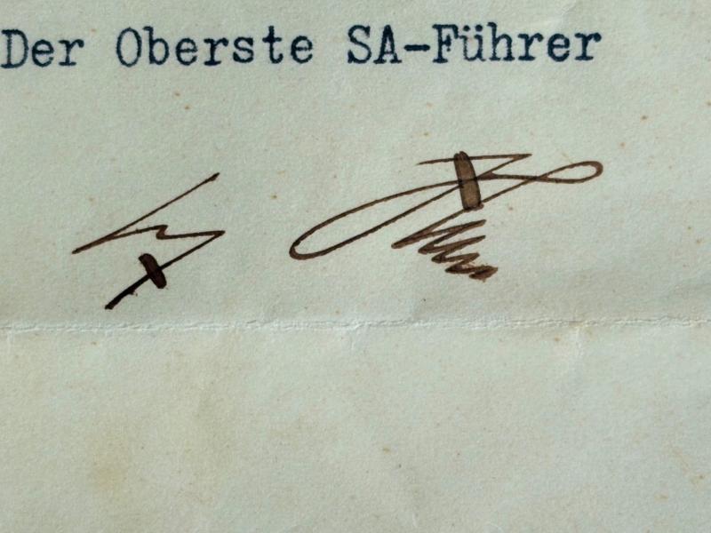 Very Rare Authentic WW2 Adolf Hitler Hand Signed in ink Signature Order document to the SA (Brown Shirts -Stormtroopers), from the Reichs Chancellery.