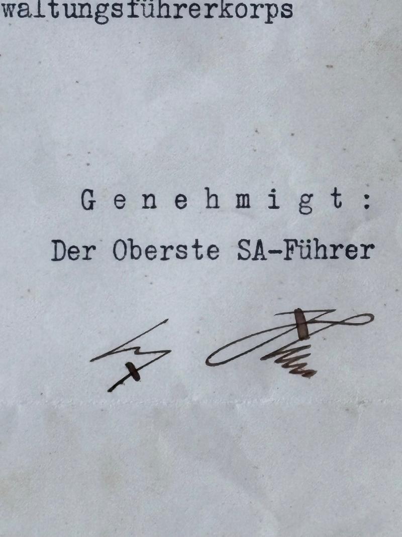Very Rare Authentic WW2 Adolf Hitler Hand Signed in ink Signature Order document to the SA (Brown Shirts -Stormtroopers), from the Reichs Chancellery.