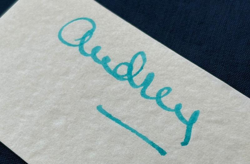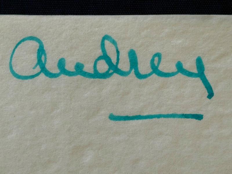 Audrey Hepburn Authentic Original Hand Signed in Blue Ink Autograph 'Audrey'.