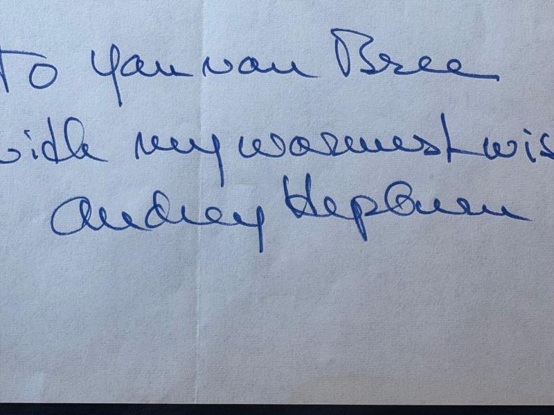Rare Authentic Audrey Hepburn Hand Ink Signed autograph with a short inscription.