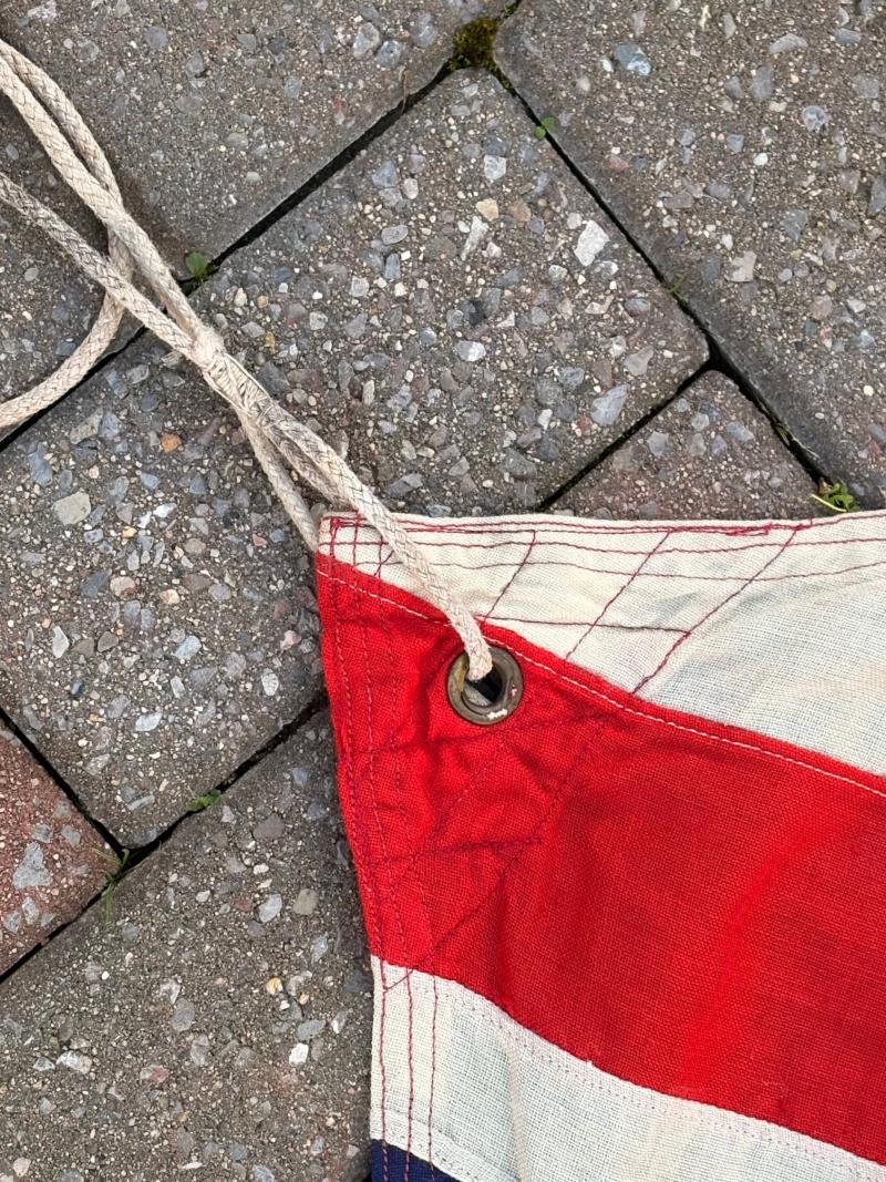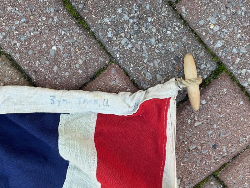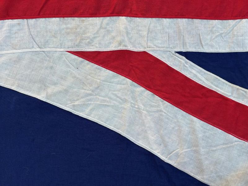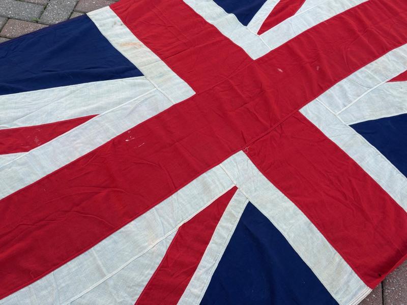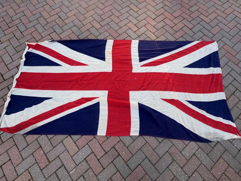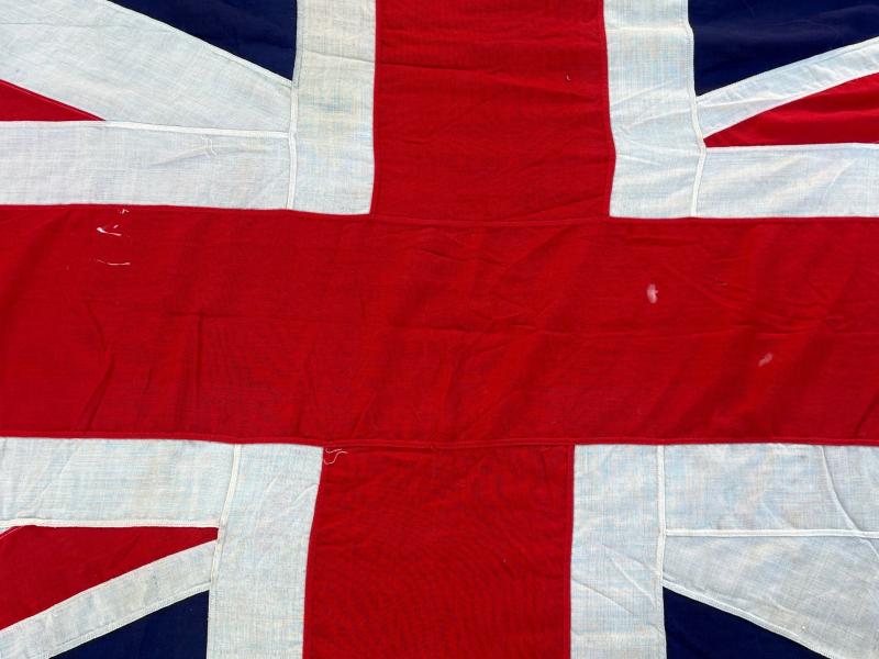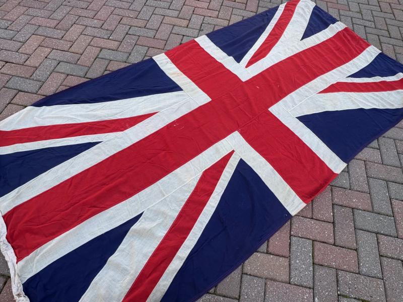 A very nice authentic original large early 20th Century 1916 British patriotic recruitment union jack flag, the flag still retains all of its original vivid colours, the weave is of a thick material finishing, the flag is panel sewn and with its original rope attachment and toggle to top intact and to the bottom rope wall tieback attachment for anti-rap over , this flag has been kept in very good condition for many years and was used in ceremonial occasions after the war, it has cleaned many years ago but still shows its age and wear. The flag is a perfect display size a very nice collectable size British union flag dating from 1916. Would look superb framed or in a themed bar or restaurant. This flag was Purchased by me from an Exeter devon antiques fair, the vendor (collector) some years ago he purchased it directly from the original building that was used for the recruitment of British army forces, the flag was used for various occasions until its refurbishment and sold to him, this flag was used during the British recruitment campaign WW1 1916 Exeter Devon.