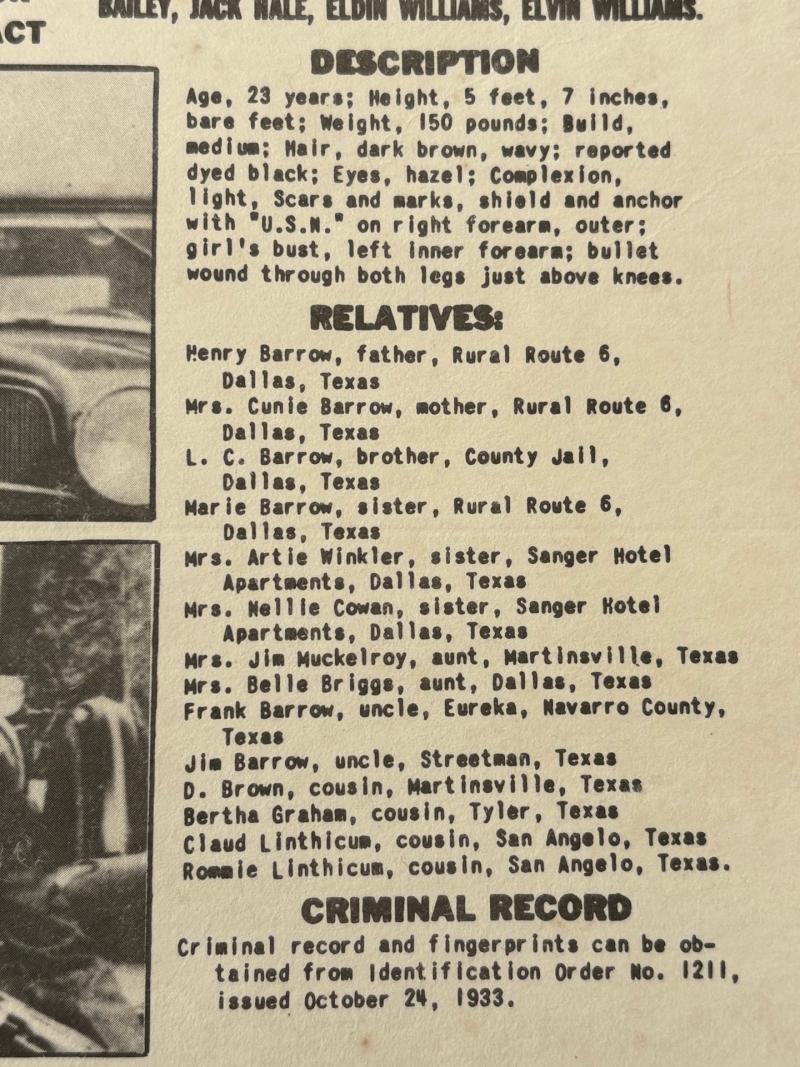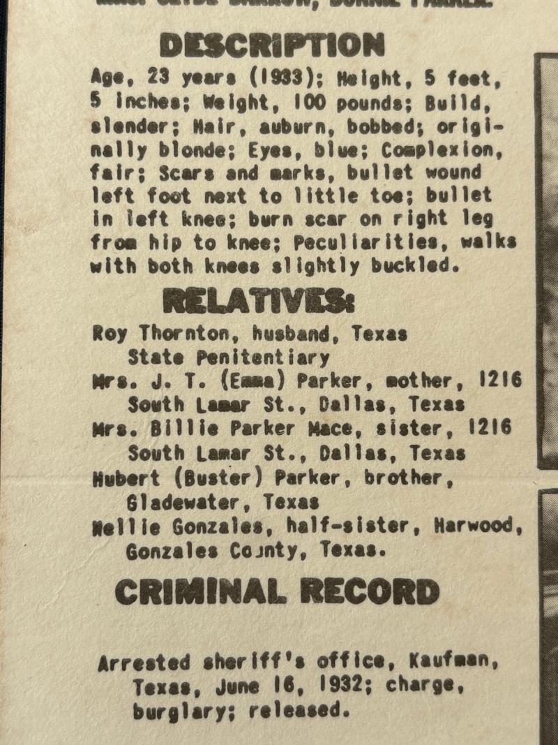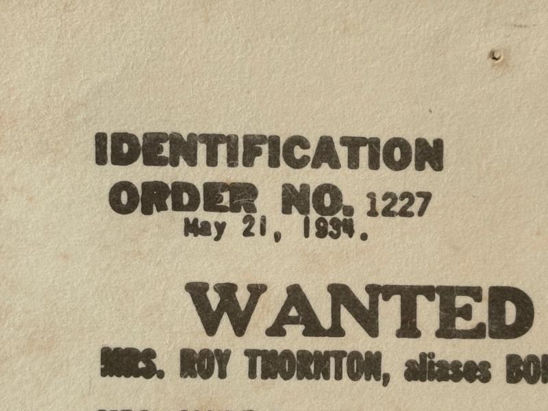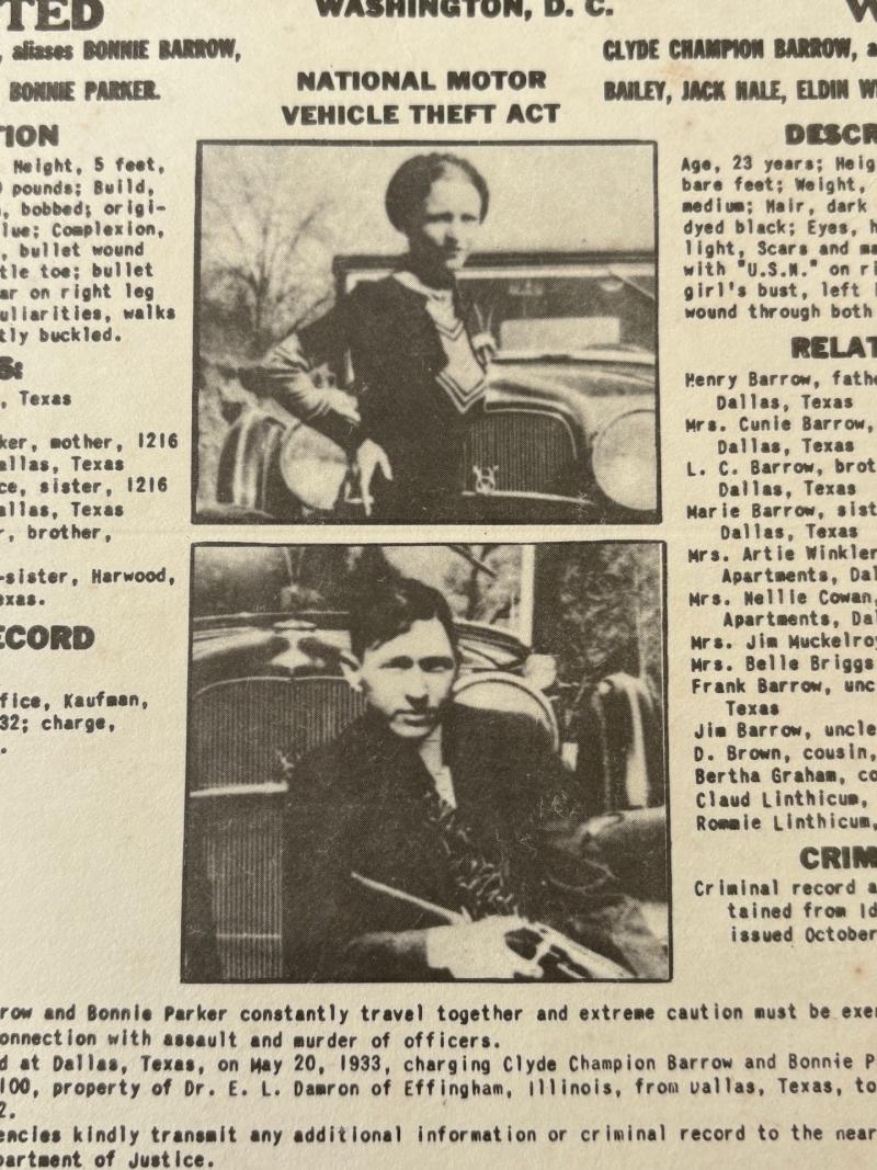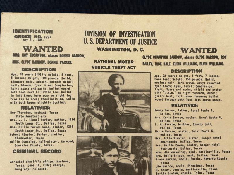 ORIGINAL BONNIE & CLYDE ISSUED WANTED POSTER DATED 1934